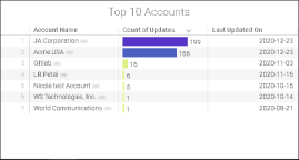 What are the top 10 updated accounts?